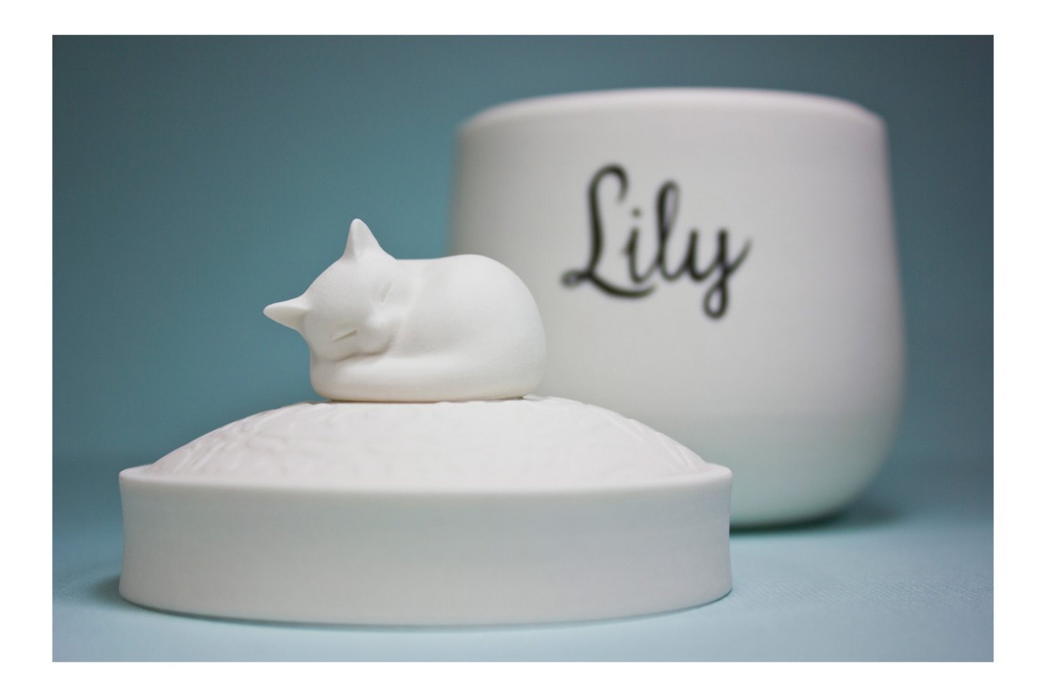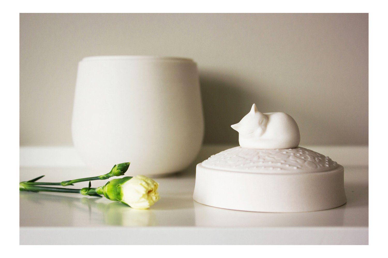 Modern White Cat Urn, The Darling Ivory Signature Design
