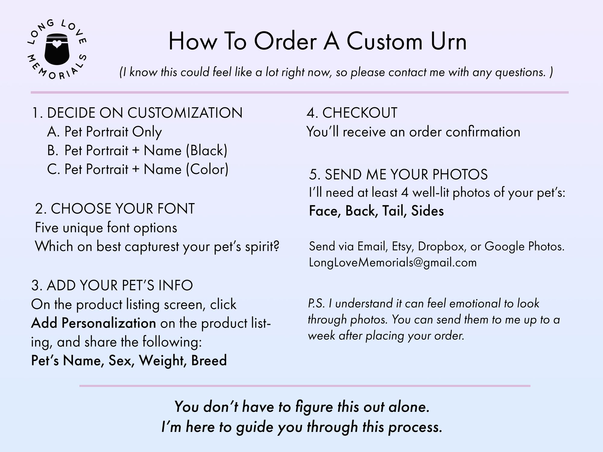 • Made to order in my Los Angeles studio by someone who understand pet loss.